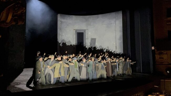 Cabe mencionar especialmente al Coro de la Ópera de Tenerife que dirige Miguel Ángel Arqued, que realizó una excelente labor, realzando los momentos culminantes de la ópera como las escenas finales…