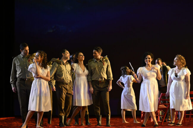 La sección masculina del Coro Intermezzo, parcialmente travestido por exigencias de la producción, ofreció una actuación muy eficaz tanto en escena como en las intervenciones fuera de ella, subrayando con…