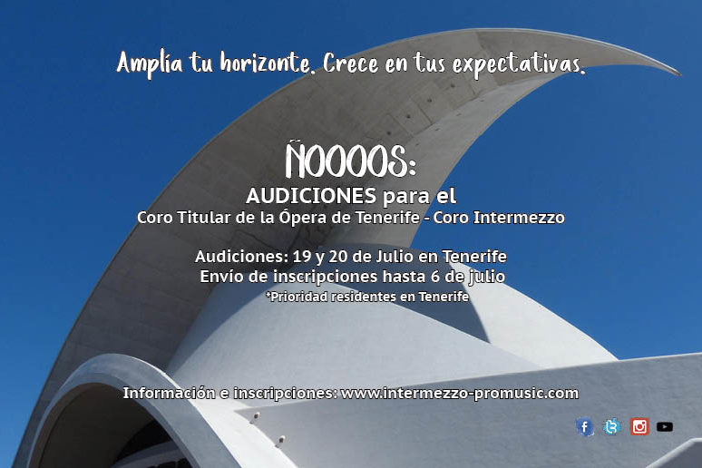 Convocatoria Audiciones Coro Intermezzo para formar el Coro Titular de la Ópera de Tenerife Intermezzo Programaciones Musicales convoca Audiciones Líricas con el objeto de confeccionar un Coro Intermezzo como coro…